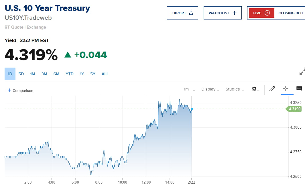 오후 2시 공개된 1월 연방공개시장위원회(FOMC) 회의록에서는 금리 인하에 대한 조심스러운 태도가 두드러졌습니다. "대부분(most) 회의 참가자들은 기준금리를 인하함에 있어 '너무 빨리 움직일' 위험(Risks Of Easing Too Quickly)에 대해 지적했다. 인플레이션이 2%로 지속해서 하락하는지 판단하기 위해 들어오는 데이터를 신중하게 평가하는 것이 중요하다고 강조했다. 단지 몇 명(only a couple)만이 지나치게 제약적인 정책과 관련된 위험을 강조했다"라고 기술했습니다. Fed 직원들의 경제 전망도 12월 FOMC 회의록 때보다 약간 더 강해졌습니다. 또 인플레이션을 낮추기 위한 추가 진전이 예상보다 오래 걸릴 가능성에 어느 정도 무게를 두었습니다.