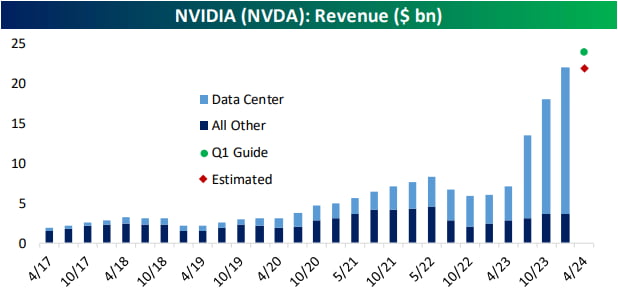 배런스는 "엔비디아와 관련된 가장 좋은 비유는 19세기 캘리포니아 골드러시다. 당시 돈을 가장 많이 번 사람은 삽을 파는 사람이라는 속담이 있다. 엔비디아가 하는 일이 바로 그거다. 인공지능은 금광이다. 어느 회사가 AI로 가장 큰 돈을 벌지는 확실하지 않지만, 시작하려면 엔비디아의 고성능 칩을 사야한다"라고 지적했습니다. 지금 엔비디아의 유일한 문제는 예상보다 빠르게 증가하는 수요를 충족할 만큼 충분한 반도체를 생산하지 못하는 것입니다. 젠슨 황은 "(수요가 너무 강해서) 생산한 칩을 고객에게 공정하게(fair) 할당하고 있다"라고 말했습니다. 시간이 지나면 경쟁자들이 엔비디아를 따라잡으며 치열한 경쟁에 직면하게 될 것입니다. 그러나 금세 벌어질 일은 아닙니다. 젠슨 황은 "사람들이 우리 GPU를 칩 하나처럼 생각한다. 하지만 우리 호퍼 GPU는 3만5000개 부품으로 이뤄져 있고 무게가 70파운드(31.7kg)나 된다. 이건 정말 복잡한 장치다. 이건 AI 슈퍼컴퓨터라고 부르는 게 맞다"라고 설명했습니다. 뉴욕 증시 개장과 함께 엔비디아는 11% 상승세로 거래를 시작했습니다. 그리고 더 더 올랐습니다. 결국, 16.4% 오른 채 거래를 마쳤습니다. 홀로 상승한 것도 아닙니다. AMD(10.4%) ARM(4.17%) 등 관련 주도 큰 폭으로 뛰었고요. 모멘텀이 꺼져가던 슈퍼마이크로는 32.87% 넘게 폭등했습니다. 이런 엔비디아의 앞길에는 어떤 걸림돌이 있을 수 있을까요? ▶ 기술적 저항? 펀더멘털에 별 이상은 없어 보입니다. 월가가 일제히 목표주가를 올린 가운데 유일하게 목표주가를 낮춘(850달러에서 800달러) 곳이 UBS였는데요. UBS는 "(콘퍼런스콜에서) 앞으로 매출 성장 둔화를 시사할 수 있는 몇 가지 항목(주로 공급 부족 및 운영 비용)이 있었지만, 이것이 어떻게 나타날지 살펴봐야 한다. 겨우 가이던스를 맞추거나 가이던스를 맞추지 못할 수도 있다. 우리는 일부 성장 둔화 가능성을 반영하기 위해 실적 추정치를 약간 줄였다. 다만 엔비디아는 가이던스 제시에 있어 통상 보수적이었고 지난 3개 분기 동안 모두 제시한 전망치보다 20억 달러 이상 많은 매출을 이뤄냈었다"라며 투자등급을 유지했습니다. 밸류에이션이 높다는 지적이 있지만, 반박이 더 강합니다. 카슨그룹의 라이언 디트릭 전략가는 "매그니피선트 7 주식(Mag 7)이 버블 속에 있나? 일부 지표를 보면 그들 주가는 굉장히 비싸다. 그러나 중요한 건 그들의 이익이 주가보다 더 크게 증가하고 있다는 것이다. 2021년부터 따져서 엔비디아 주가는 130% 올랐는데, 이익은 231% 상승했다. 이는 오히려 멀티플은 감소했다는 뜻이다. 다른 Mag 7 주식도 비슷하다"라고 주장했습니다.