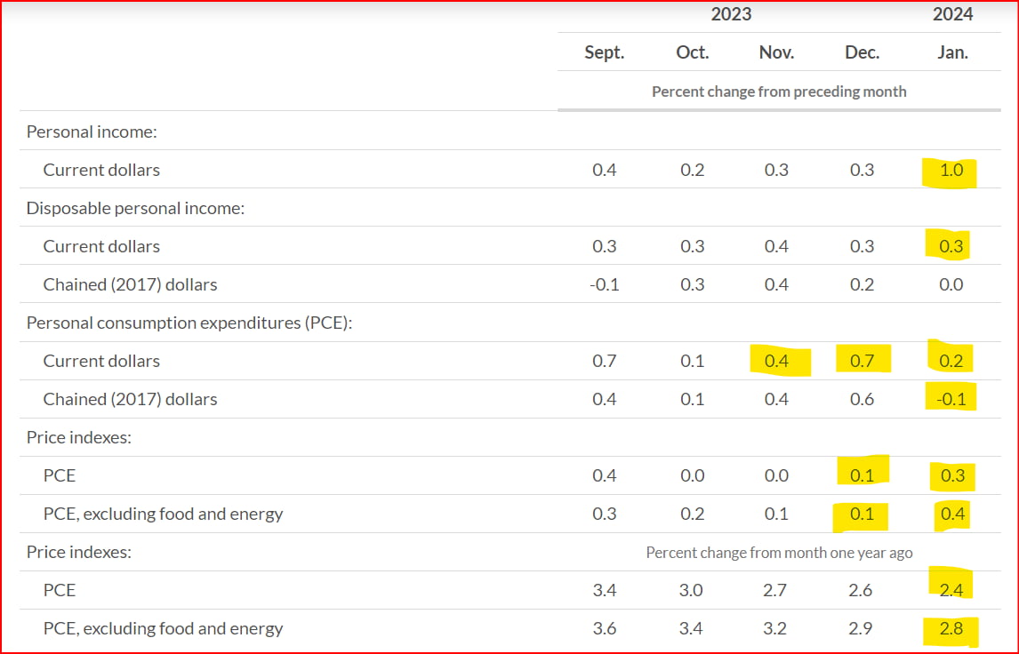 1월 개인소비지출(PCE) 물가는 월가 예상에 부합했습니다. 부정적 놀라움을 줬던 1월 소비자물가(CPI), 생산자물가(PPI)가 일으킨 충격 같은 건 없었죠. 그래서 투자자들은 조금 안도할 수 있었습니다. 29일(미 동부시간) 뉴욕 증시의 주요 지수는 상승했고, 뉴욕 채권 시장에서는 수익률이 하락했습니다. 아침 8시 30분에 발표된 1월 PCE 보고서에 대해 자세히 알아보겠습니다.