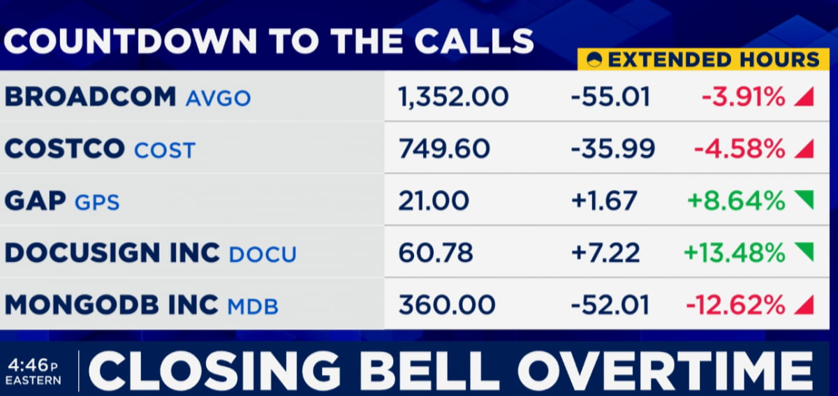 장 마감 뒤 실적을 발표한 브로드컴은 회계연도 1분기 매출이 119억 6000만 달러(예상 118억 달러)로 지난해 같은 기간보다 34% 증가했습니다. 그러나 이는 소프트웨어 업체 VM웨어 인수에 따른 것으로 이를 빼면 11% 증가한 것으로 추정됐습니다. 반도체 사업만 따지면 1분기에 73억9000만 달러의 매출을 기록했는데, 월가 추정치 77억 달러를 밑돌았습니다. 오는 10월로 끝나는 2024 회계년도 매출도 500억 달러로 기존 전망치를 그대로 유지했고요. 주당순이익(EPS)은 10.99달러로 월가 추정 10.42달러를 넘었습니다. 정규장에서 4.22% 폭등한 브로드컴은 시간 외 거래에서 소폭 하락 중입니다. 혹 탄 CEO는 "AI 컴퓨팅으로 인해 네트워킹 칩과 소프트웨어 부문의 수요가 증가했다. AI 우리 반도체 부문의 성장을 주도하고 있다"라고 말했습니다.