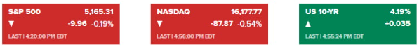 주요 기술주가 대부분 약세를 보이면서 뉴욕 증시는 종일 하락권에 머물렀습니다. 마감 35분을 앞둔 오후 3시 25분께 대규모 매물이 쏟아지면서 하락 폭은 좀 더 커졌고요. 결국, S&P500지수는 0.19%, 나스닥은 0.54% 내렸습니다. 다우만이 0.1% 강보합세를 보였습니다.