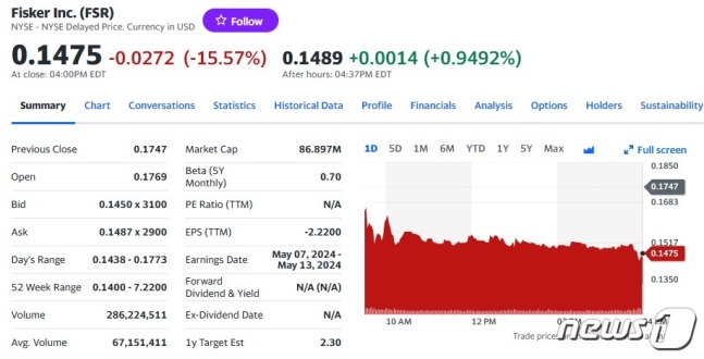 한편 최근 파산 위기를 맞고 있는 피스커도 공장 가동을 6주간 중단한다는 소식으로 15.57% 폭락했다.