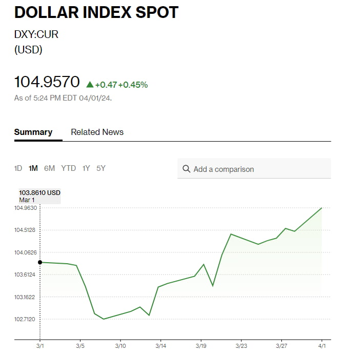 하지만 경기와 물가가 되살아나고 있다는 데이터가 나왔습니다. 3월 제조업 구매관리자지수(PMI)가 예상보다 뜨겁게 발표됐고, 덩달아 제조업 물가도 큰 폭 상승중인 것으로 드러난 것이죠. 이는 악재로 작용했습니다. 금리가 펄쩍 뛰고, 주가 상승세는 꺾어졌습니다. 장중 이스라엘이 시리아를 공습해 이란의 군사령관을 살해했다는 소식도 전해지면서 지정학적 긴장감도 올라갔습니다.