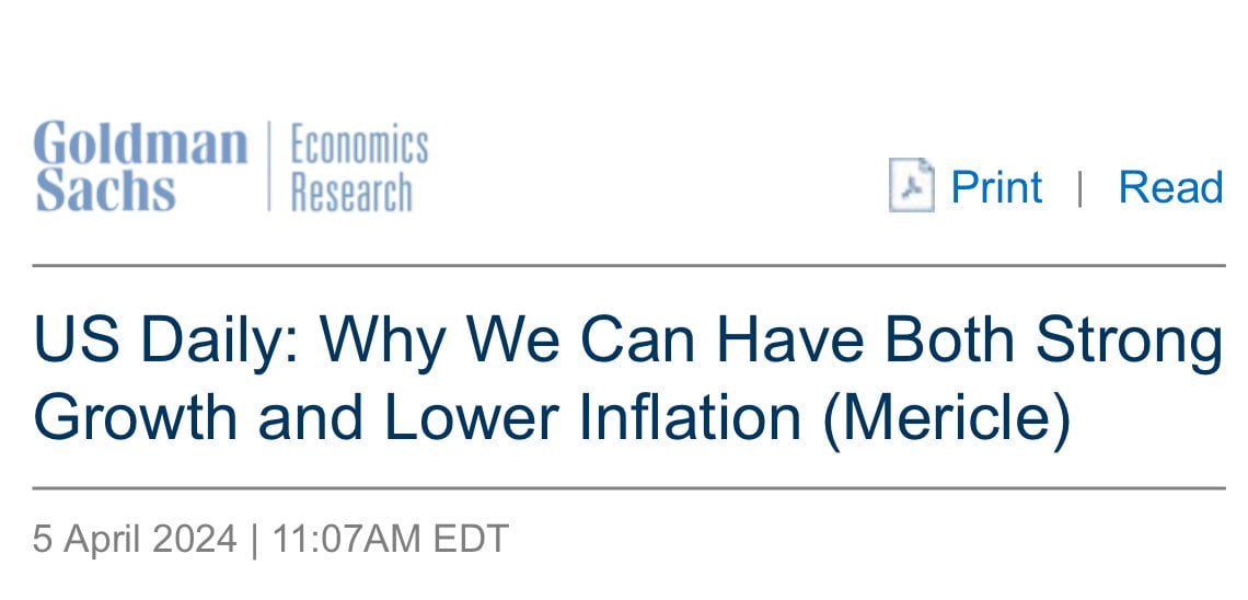 반면, 골드만삭스는 고용 데이터가 나온 뒤 "우리는 올해 컨센서스보다 훨씬 더 강한 GDP 성장을 기대하지만 그런데도 근원 개인소비지출(PCE) 인플레이션은 연방공개시장위원회(FOMC)가 6월부터 3차례 금리를 인하할 만큼 충분히 둔화할 것으로 예상한다. 우리는 이런 예측이 모순되지 않는지 종종 질문을 받는데, 우리는 모순된다고 생각하지 않는다"라고 밝혔습니다. 그러면서 "정부, 헬스케어 업종에서 계속해서 많은 일자리가 생겼지만, 외국인 근로자 유입으로 혜택을 받는 레저, 건설과 같이 기술 수준이 낮은 부문에서도 고용 성장이 두드러졌다"라고 설명했습니다. 이민으로 인해 고용이 강해도 인플레이션을 자극하지 않을 것이란 파월 의장 논리를 수용한 것이죠. 그러면서 여전히 6월부터 인하를 시작해 올해 세 차례 금리를 내릴 것이란 전망을 유지했습니다.