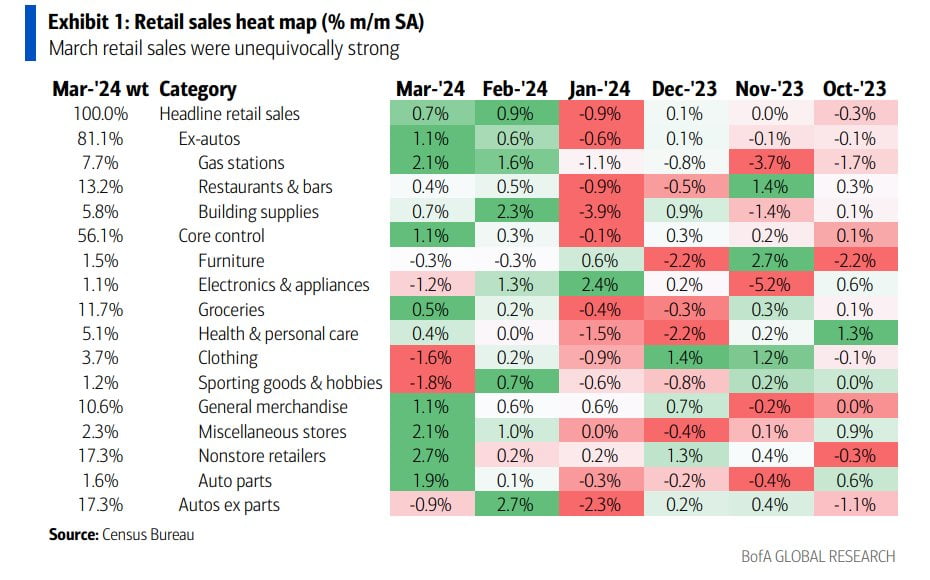 웰스파고의 이런 희망적 분석은 오전 8시 30분 발표된 3월 소매판매 때문에 먼저 타격을 받았습니다. 기대치를 훨씬 뛰어넘는 수준으로 발표된 것이죠.