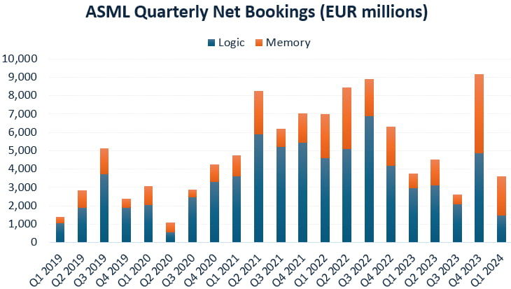 퀼터 셰비오의 벤 베링거 애널리스트는 "ASML의 실적은 많은 투자자가 기대했던 수치가 아니었다. 4분기 뛰어난 수주를 받은 뒤 1분기 줄어들 것으로 예상했지만 수주액은 그런 예상보다 더 나빴고, 이는 잠재적 조기 경보로 볼 수 있다"라고 밝혔습니다. 그는 "실적 부진에는 여러 가지 요인이 있다. 경기는 여전히 매우 불확실하므로 고객사는 이전만큼 주문하지 않는다. 2025년 신제품이 나오기 때문에 일부 주문을 늦출 수 있다. 아직 연초여서 상황이 바뀔 수 있다. 마지막으로 중국 판매는 양호하지만 앞으로 어떤 일이 생길지 가늠하기 어렵다"라고 설명했습니다.