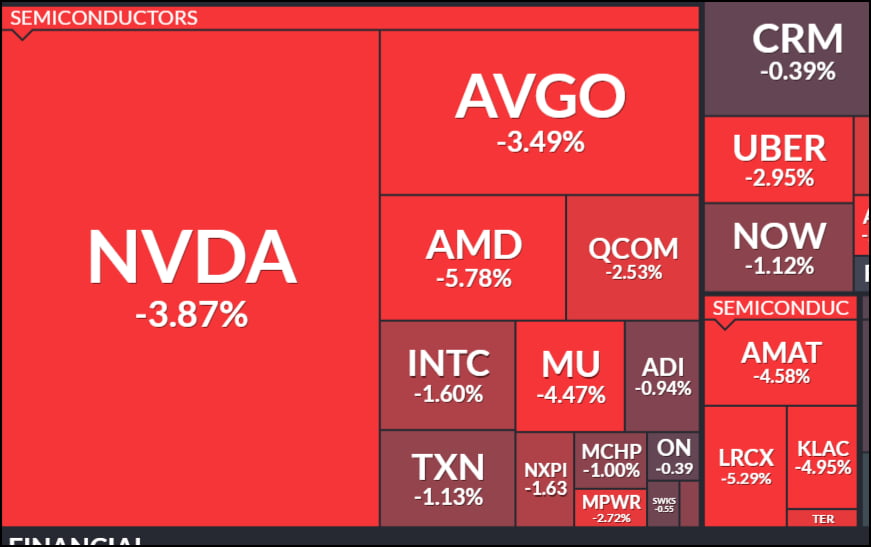 ASML뿐 아니라 AI 테마, 특히 반도체 주식이 직격탄을 맞았습니다. 엔비디아는 3.97%, AMD는 5.78% 하락했습니다. 반도체 장비 주인 램리서치 5.29%, 어플라이드 머터리얼스 4.58% 등도 급락세를 보였고요. 필라델피아 반도체 지수는 3.25% 떨어졌습니다.