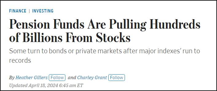 최근 분위기가 냉각되다 보니 돈을 빼는 투자자가 늘고 있습니다. 월스트리트저널(WSJ)은 아침 내내 '연기금이 주식에서 수천억 달러를 빼내고 있다'(Pension Funds Are Pulling Hundreds of Billions From Stocks)라는 제목의 기사를 온라인 톱기사로 띄웠습니다. 대형 연기금들이 주식 포트폴리오에서 블록버스터급 성과를 거두었고, 이제 펀드 매니저들이 차익실현을 하고 있다는 것입니다. 그래서 채권으로 옮기고 있다는 것이죠. 그러면서 미국 최대 공적 연금인 캘리포니아 공무원 퇴직 시스템(California Public Employees' Retirement System)은 주식에서 약 250억 달러를 찾아 사모 펀드와 사채 투자에 쓸 계획이라고 보도했습니다.