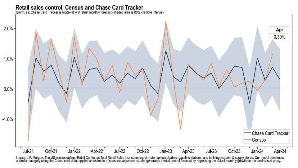 경제 데이터가 혼조세를 보이지만 월가는 침체를 두려워하지는 않습니다. 제약적 금리로 인해 경기가 둔화하는 과정에서 데이터는 섞여서 나오지만, 미국 경제를 지탱하는 고용, 소비는 건강하게 이어지고 있습니다. JP모건체이스, 뱅크오브아메리카가 발표한 신용카드 사용액은 여전히 전년 대비 증가하고 있지요. 뱅크오브아메리카는 가구당 신용카드 사용액은 4월 13일로 끝난 주에 전년 동기보다 2.6% 늘어났다고 밝혔습니다.
