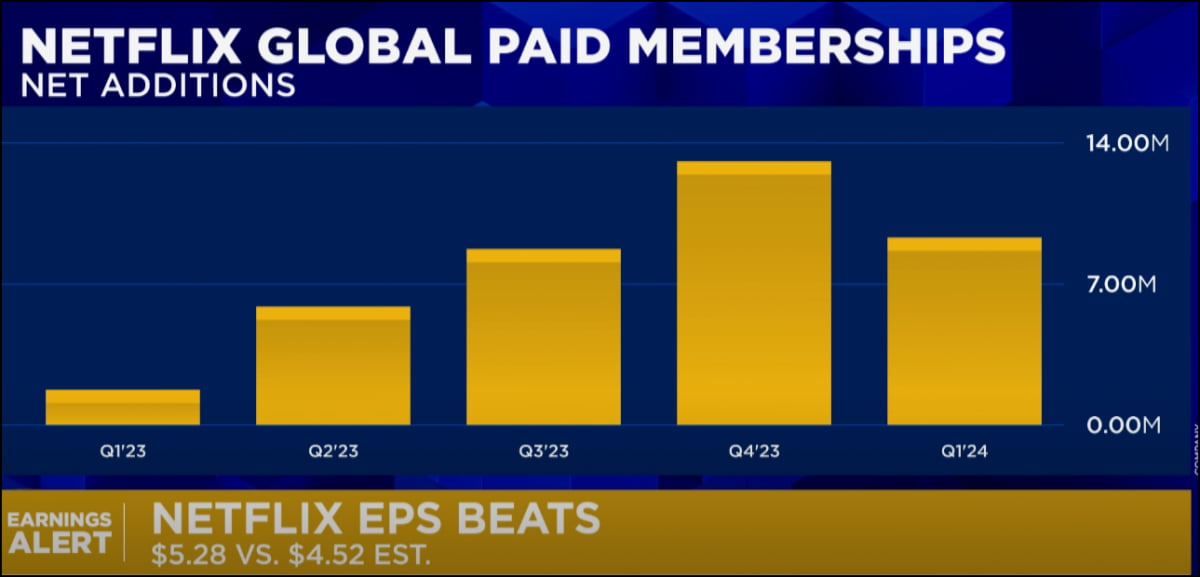 딥워터 매니지먼트의 진 먼스터 매니징 파트너는 "넷플릭스가 2025년부터 분기별 가입자 수와 ARM을 중단하기로 했다. 내 생각에는 넷플릭스가 2023년 순풍(비밀번호 단속, 광고요금제 도입, 구독료 인상)의 정점에 도달했다고 깨달았기 때문이다. 일반적으로 이런 핵심적인 데이터를 실적 보고에서 제거하면 주가 멀티플이 감소한다"라고 지적했습니다.