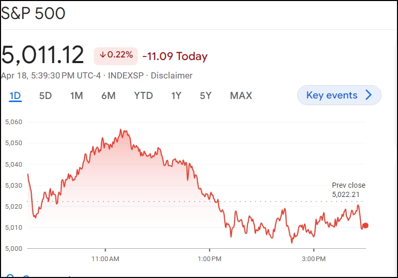 결국, S&P500 지수는 0.22%, 나스닥은 0.52% 하락했습니다. 다우만이 0.06% 강보합세를 유지했습니다. S&P500지수는 닷새 연속 하락세를 나타냈습니다.