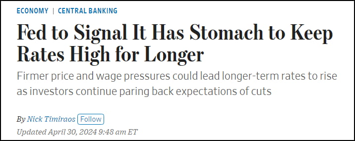'Fed의 비공식 대변인'으로 불리는 월스트리트저널(WSJ)의 닉 티미라오스 기자는 FOMC에 대한 예측을 잘 정리한 기사를 올렸습니다. 기사 제목은 'Fed는 더 오랫동안 높은 금리를 유지할 의지가 있다는 신호를 보낼 것'(Fed to Signal It Has Stomach to Keep Rates High for Longer)입니다. 핵심은 다음과 같습니다.