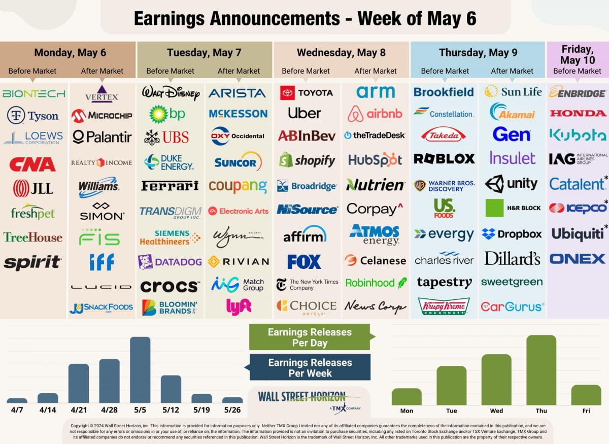 어닝시즌은 이제 막판으로 가고 있습니다. 디즈니 우버 리프트 ARM 정도가 주목할 만합니다. 빅테크 중에서는 이제 5월 23일 엔비디아만 남아 있습니다.