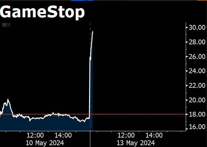 시장 전반이 조용한 가운데 밈주식이 주역을 차지했습니다. 게임스탑의 주가는 74% 폭등했습니다. 과거 게임스톱 열풍을 주도했던 개미 투자자 '울부짖는 고양이'(Roaring Kitty) 키스 길이 3년 만에 X(옛 트위터) 계정에 게시물을 올린 게 밈주식 매수 신호로 해석됐습니다. 갑작스러운 폭등세에 공매도해놓았던 헤지펀드들이 숏스퀴즈에 휘말리면서 주가는 한때 119%까지 치솟았습니다. 공매도 관련 정보업체인 S3파트너스는 공매도 투자자들이 아침에만 10억 달러 이상 손실을 봤다고 분석했습니다. 같은 밈주식인 AMC엔터테인먼트도 70% 이상 올랐고, 레딧과 로빈후드도 각각 8%대, 4%대 상승했습니다.