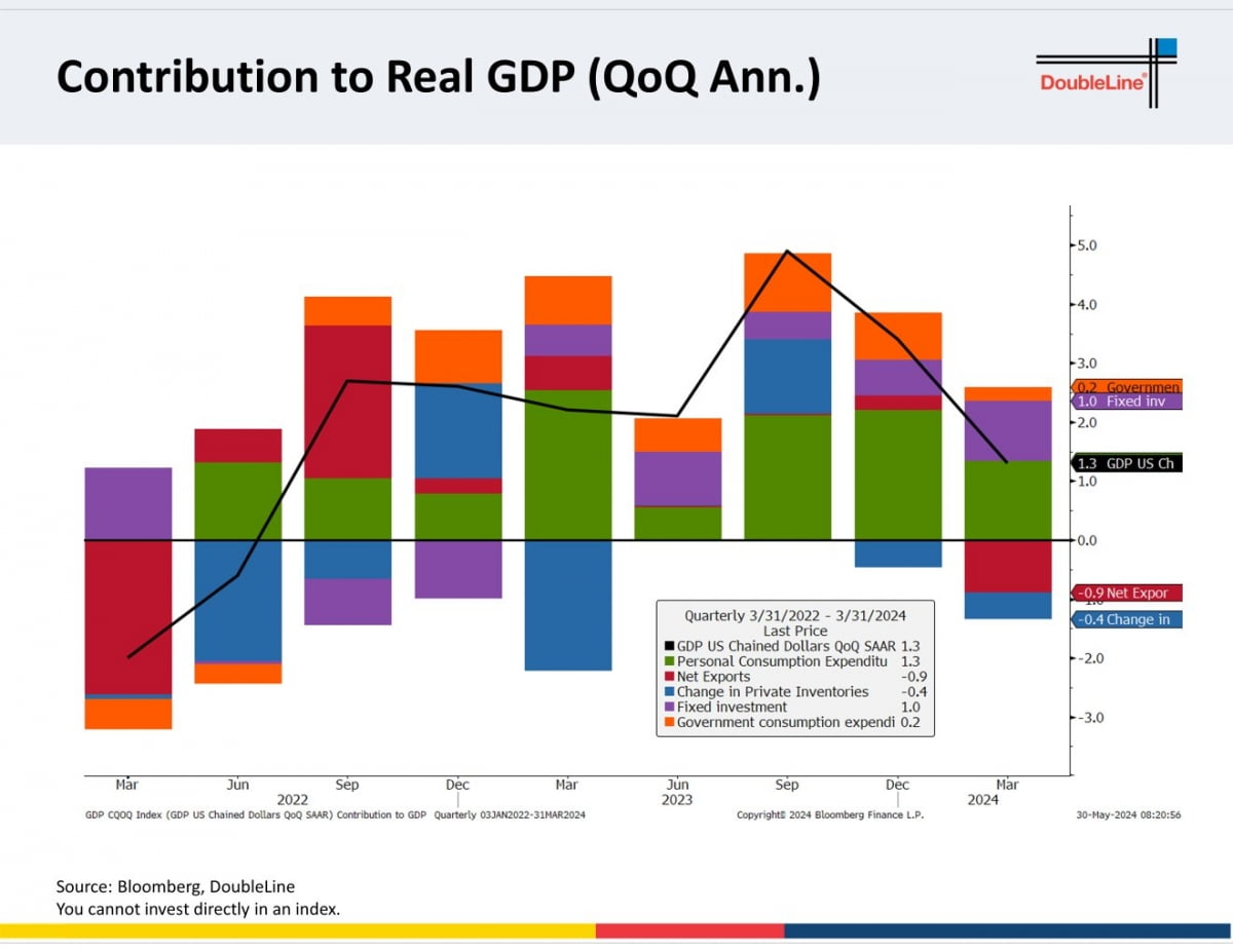 ⑶ 아침에 발표된 1분기 미국 국내총생산(GDP) 데이터는 기존 발표보다 성장이 둔화했고 물가도 약간 완화됐다는 걸 보여줬습니다.