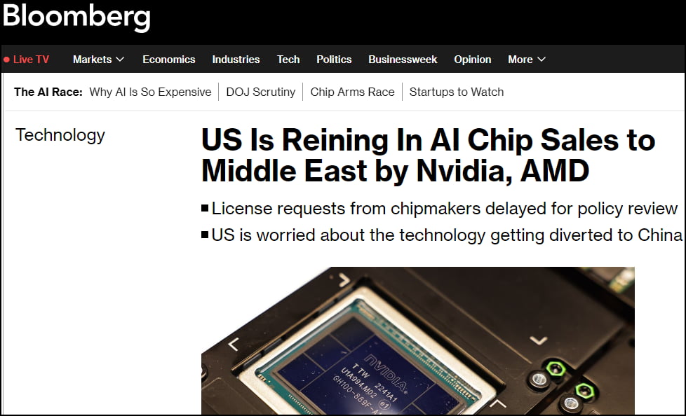 엔비디아는 3.77% 내렸습니다. 지난주 1분기 어닝 서프라이즈를 발표한 뒤 첫 하락입니다. 블룸버그는 오후 3시께 "미국 정부가 엔비디아, AMD의 AI 칩 중동 수출을 막고 있다"라고 보도했습니다. 사우디아라비아, 아랍에미레이트 등이 AI 칩 대량 수입을 모색하고 있는데, 상무부가 "국가 안보를 보호하는 게 최우선"이라면서 판매 면허 발급을 늦추고 있다는 것이죠. 중국 기업들이 이들 중동에 세워진 데이터센터를 통해 AI 칩에 접근할 수 있다는 점을 우려하고 있다고 블룸버그는 보도했습니다. 문제는 이렇게 여러 국가에 대한 수출길이 막히면 엔비디아의 매출 성장 속도가 지금 기대만큼 높지 않을 수 있다는 것이죠.