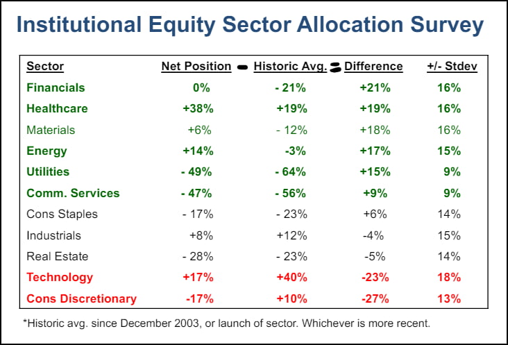 최근 시장에서는 오늘처럼 순환매 모습이 나타나고 있습니다. 비싸진 기술주와 경기방어주(IT, 커뮤니케이션 서비스, 헬스케어, 필수소비재, 유틸리티)에서 벗어나 경기순환주(산업, 소재, 에너지, 임의소비재) 등으로 옮겨가고 모습이 일부 나타나고 있는 것이죠. 에버코어 ISI는 기관 투자자 대상으로 설문조사를 실시해 "1분기에는 기관들이 경기방어 업종에 대한 노출을 꾸준히 늘렸는데, 2분기에는 매수 중심(long only) 기관 투자자들이 경기민감 업종 노출을 증가시키고 있다"라고 분석했습니다.