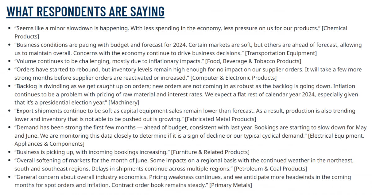 이에 대해 네드 데이비스 리서치는 "ISM과 S&P 글로벌의 상반된 5월 제조업 PMI 수치는 제조업 활동의 실제 상태에 대한 불확실성을 보여준다. 두 PMI의 평균은 5월 약간 상승하여 50.0을 기록했다. 이는 2022년 후반부터 대부분의 시간 동안 제조업이 위축된 후 점차 안정화되었음을 시사하지만, 전반적으로 여전히 부진한 상태"라고 분석했습니다.