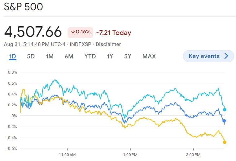 뉴욕 증시의 주요 지수는 강보합권에서 거래를 시작했습니다. 대부분의 시간 동안 플러스를 유지했지만, 장 막판 내림세를 보였습니다. 결국, 다우는 0.48%, S&P500 지수는 0.16% 내렸고 나스닥만이 0.11% 상승한 채 거래를 마쳤습니다. 8월 한 달 동안 다우는 2.36%, S&P500 지수는 1.77% 하락했고, 나스닥은 2.17% 떨어졌습니다.