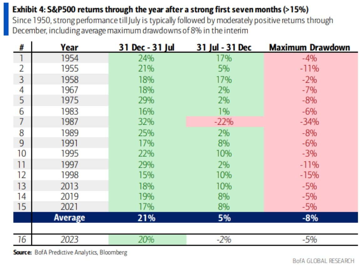일부에선 2001년 9·11 테러, 2008년 리먼브라더스 파산 등 대규모 시장 붕괴를 뺀다면 그리 부정적이지 않다고 지적합니다. 뱅크오브아메리카는 7월까지 주식이 크게 상승했다가 8월에 조정을 보인 올해와 비슷한 해가 15차례 있었는데, 이들 해에는 8월부터 연말까지 평균 5% 수익률을 거둘 수 있었다고 밝혔습니다.